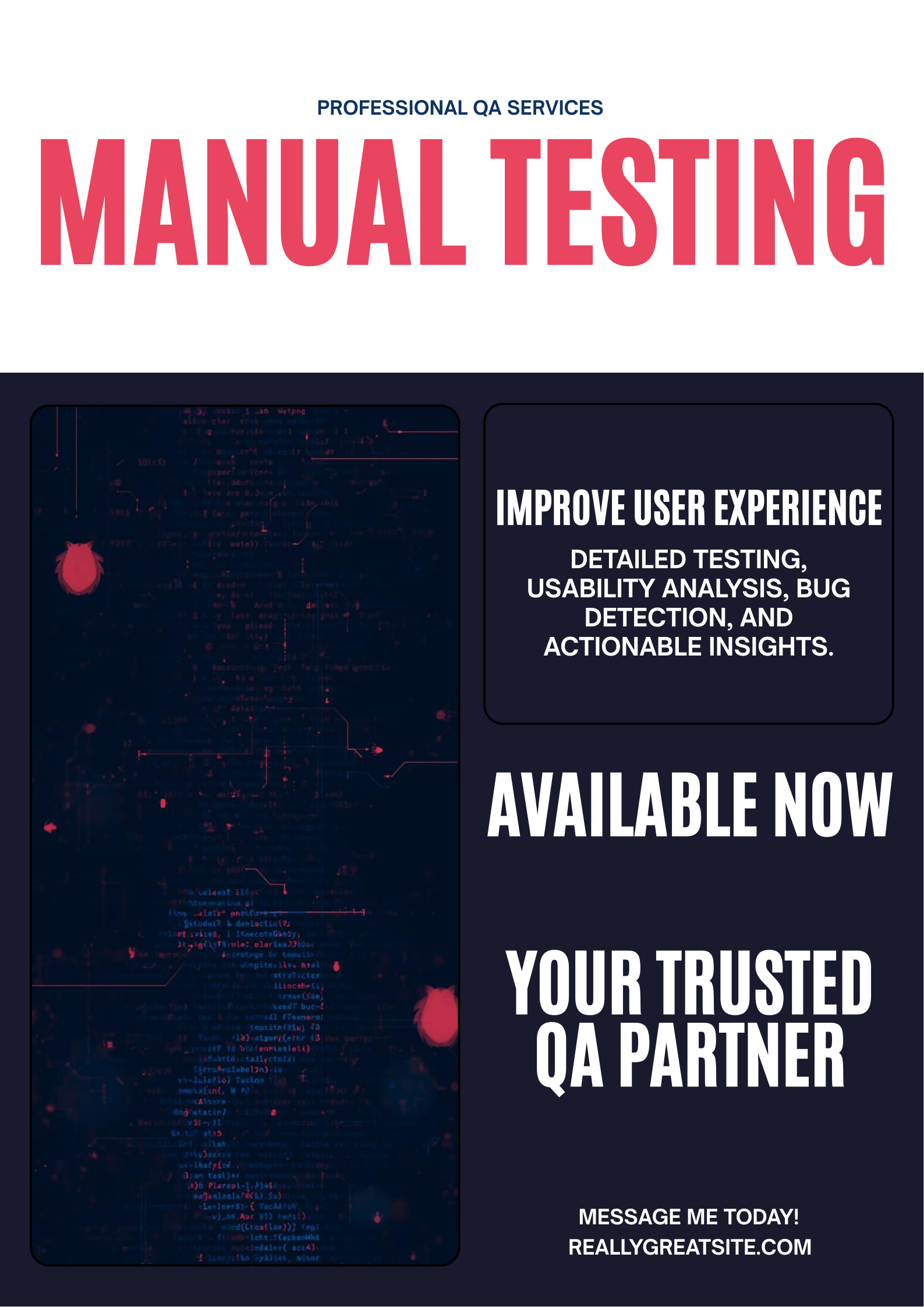 I provide detailed manual testing and usability analysis to help you improve user experience, eliminate bugs, and increase customer satisfaction.