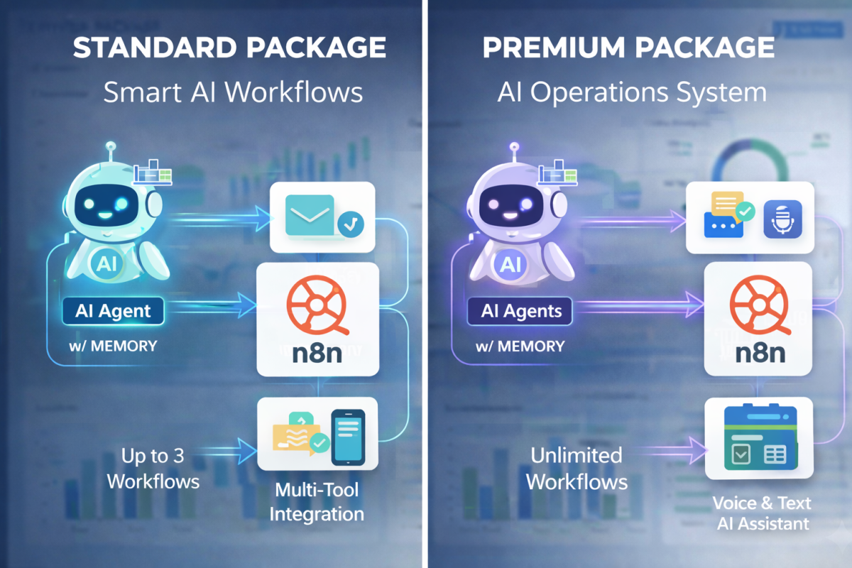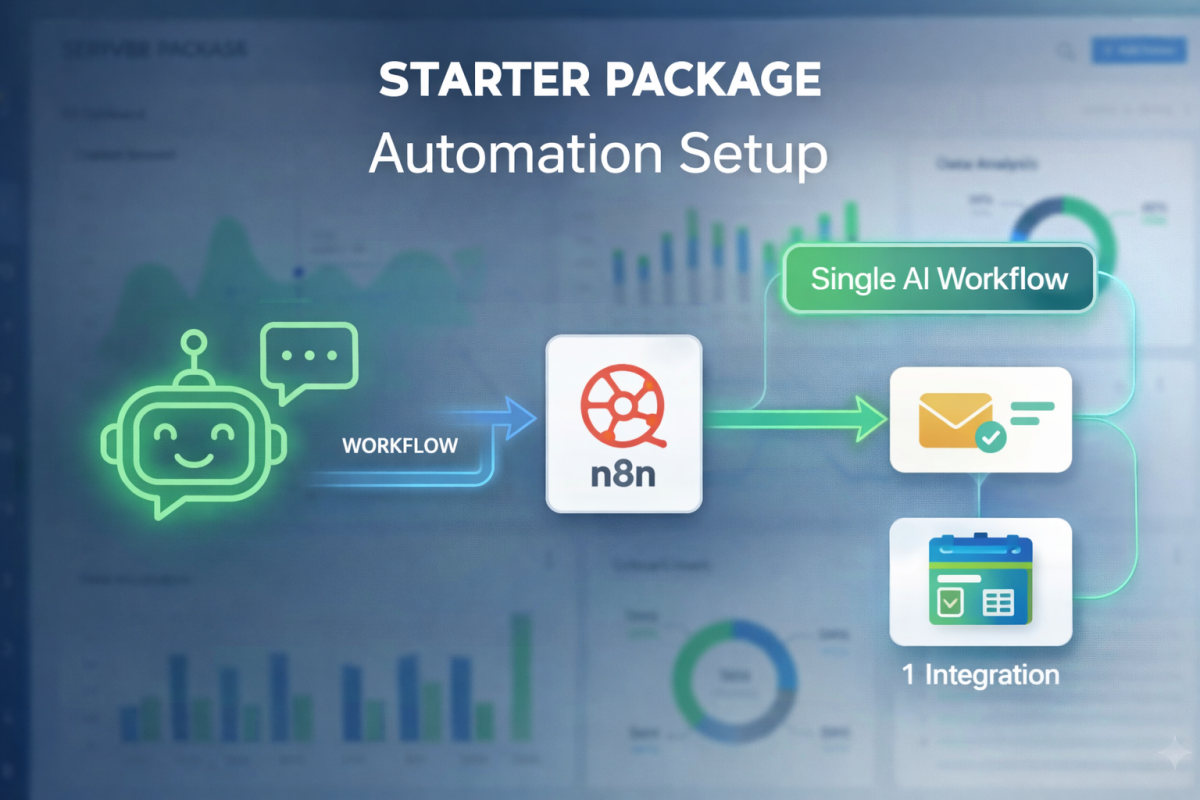 The Starter package includes one AI automation workflow built in n8n, a single tool integration (CRM, email, or calendar), basic AI logic, testing, deployment, and clear documentation.