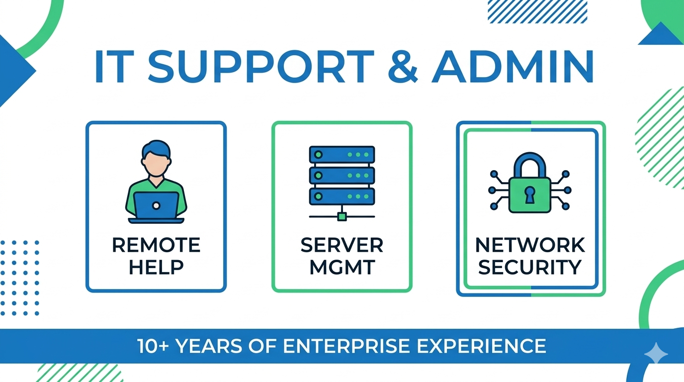 Expert IT Leader with 10 years experience in system support and network admin. I have managed over 450 staff across 350 locations with 99.9 percent uptime. Technical Skills: IT Support: Desktop and Technical support. Systems: Windows Server, AD, GPO, DNS, DHCP. Networking: Firewalls, VPN, VLAN, TCP IP. Monitoring: Zabbix, Grafana, Graylog. I focus on reducing resolution times and ensuring smooth operations. Let's optimize your IT infrastructure together.