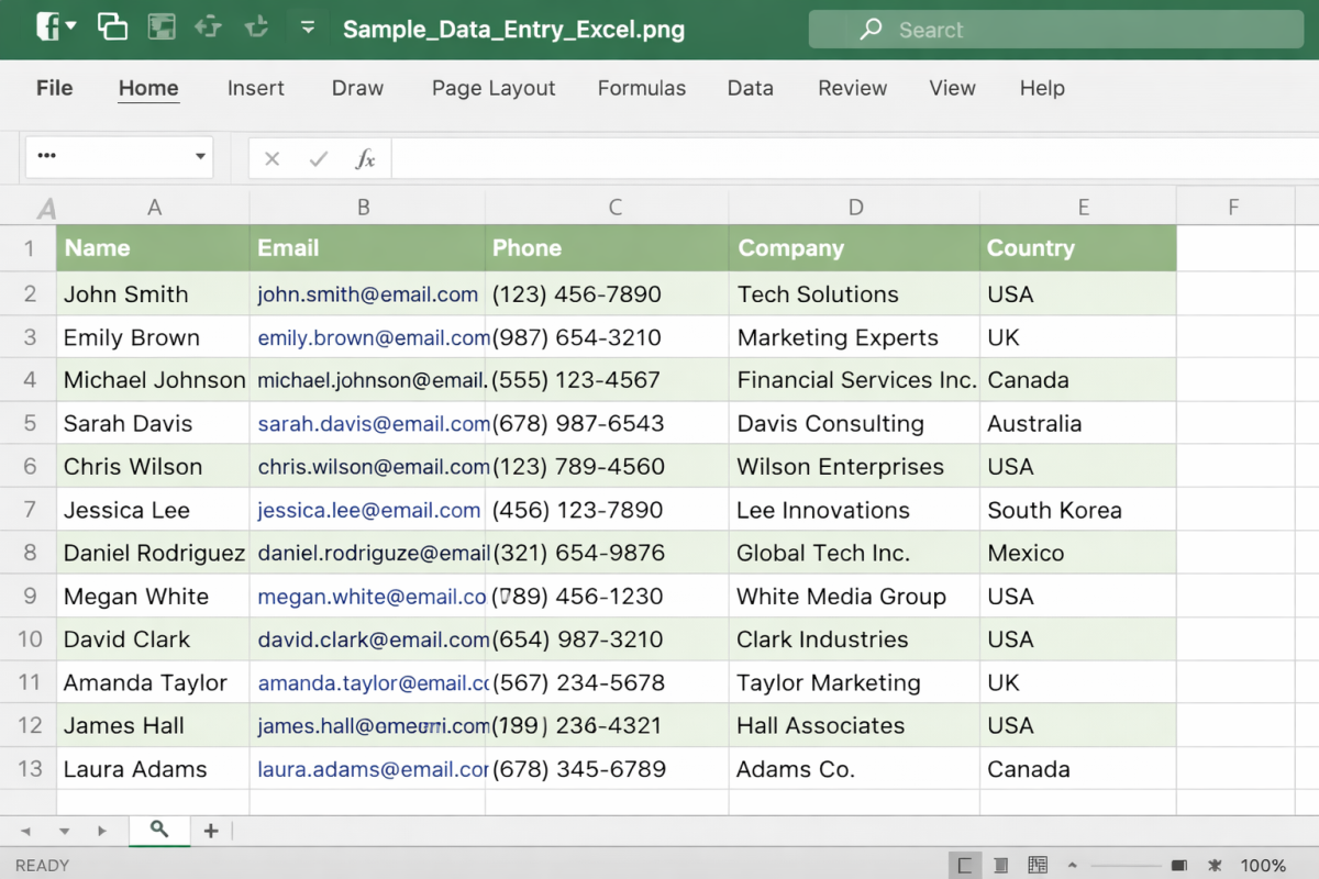 Accurate data entry with basic Excel and Google Sheets formatting.