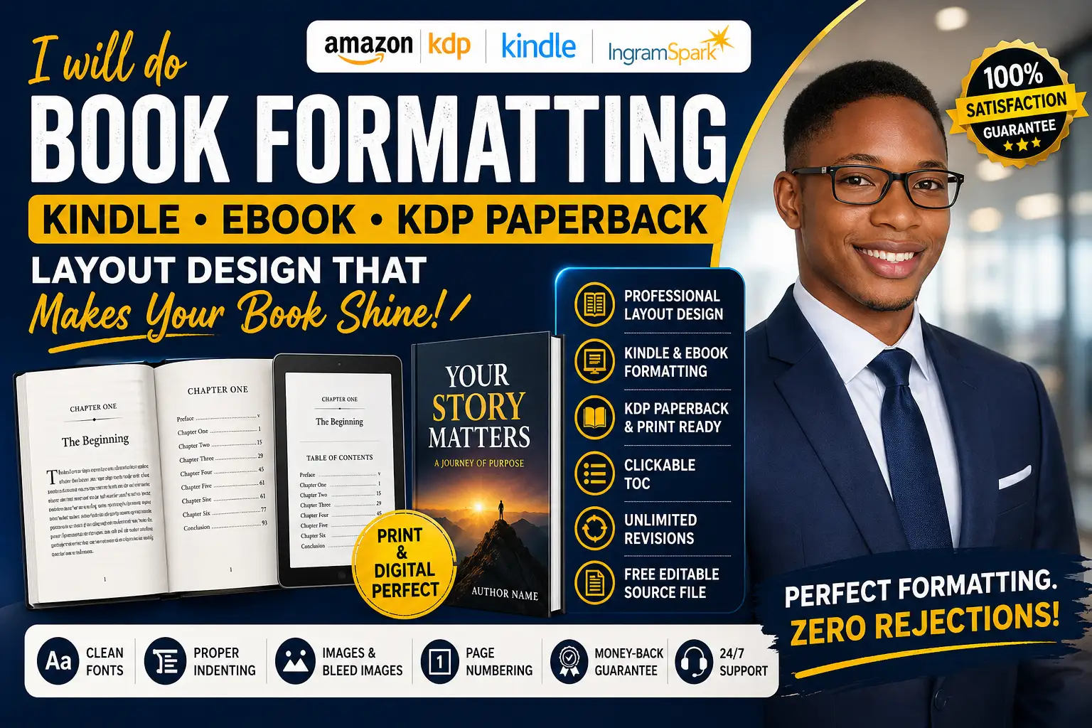 Related terms: eBook formatting, Kindle formatting, KDP paperback formatting, book formatting, interior book design, self-publishing formatting.