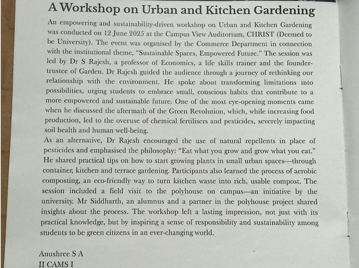 Hi! I am Anushree S A, a 2nd PU student at Christ Junior College, passionate about learning and exploring new ideas. I love expressing myself through words, whether it is poetry, articles, or everyday thoughts. I enjoy creative projects, reading, and discovering new perspectives. Ambitious and determined, I am working towards becoming a Chartered Accountant while nurturing my love for writing and storytelling.