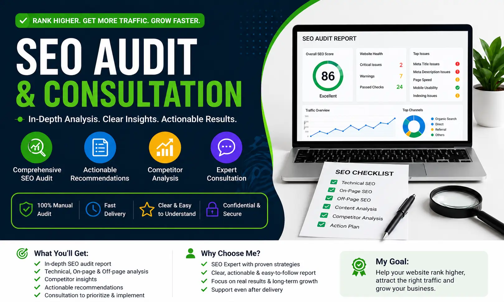 Website SEO audit with actionable insights to boost rankings and traffic.