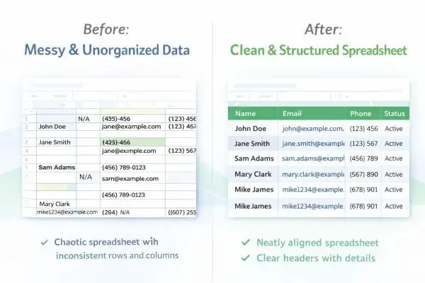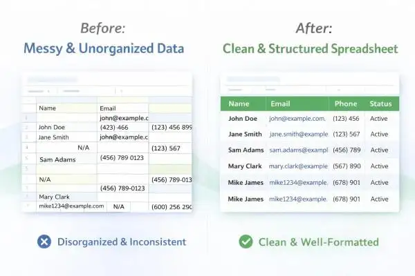 ✔ Standardizing dates, phone numbers, and text.