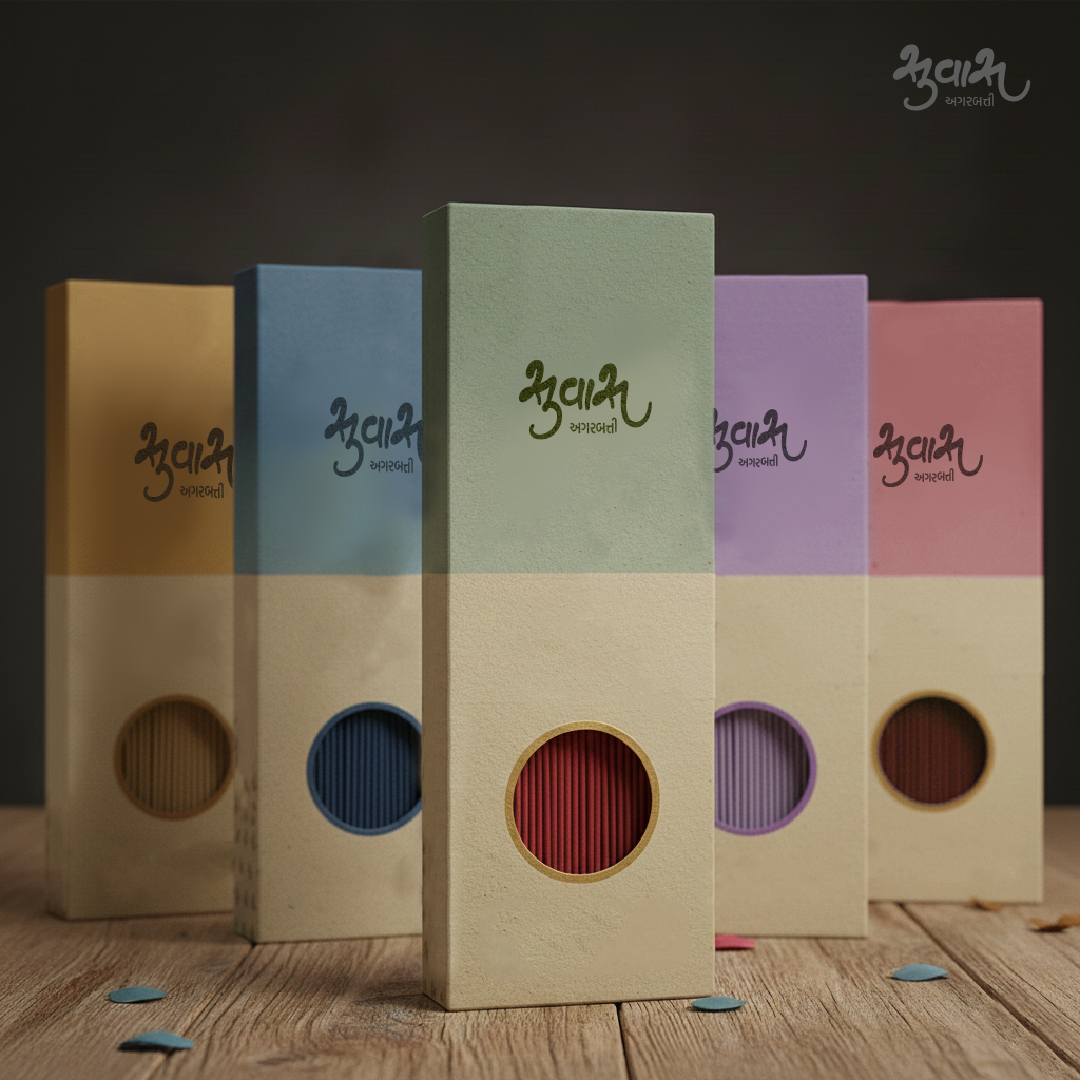 The content focuses on the design of calligraphy text, logos, and posts specifically in the Gujarati script. It emphasizes artistic representation and branding elements utilizing traditional Gujarati styles for effective communication and visual appeal.