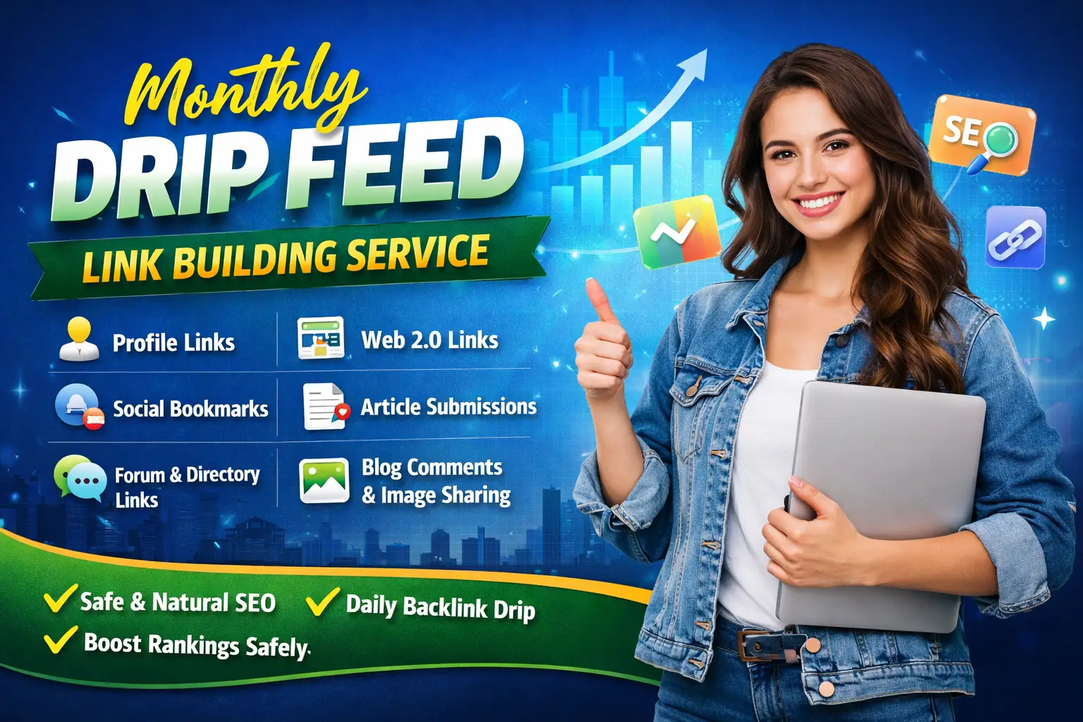 Are you looking for safe, steady, and long-term SEO growth for your website? My Monthly Drip Feed SEO Backlinks Service is designed to improve your rankings naturally and safely. Instead of creating backlinks all at once, I build links gradually every day to maintain a natural link velocity that search engines trust. This strategy helps increase domain authority, keyword rankings, and organic traffic without triggering spam signals.