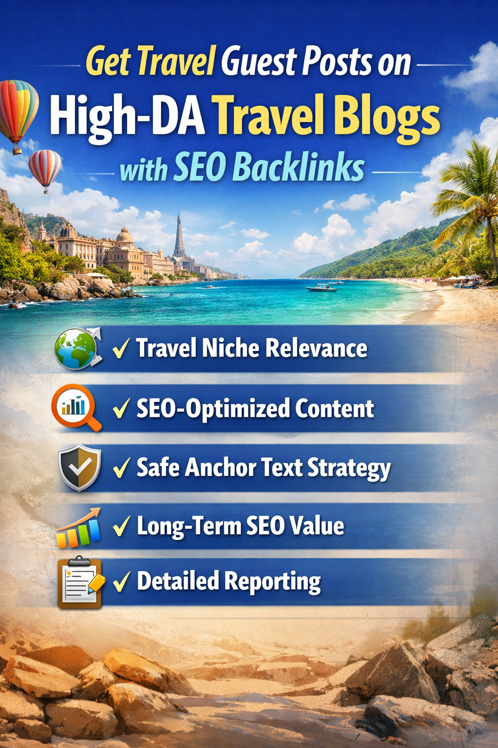 To rank your travel website, blog, tour business, or travel brand, high-quality guest posts on authoritative travel blogs are essential. This service provides genuine travel guest posts published on high-DA, niche-relevant travel websites through 100% manual outreach and fully white-hat SEO practices. Each guest post includes a natural, contextual dofollow backlink placed within high-quality travel content, helping boost domain authority, keyword rankings, organic traffic, and overall brand trust.