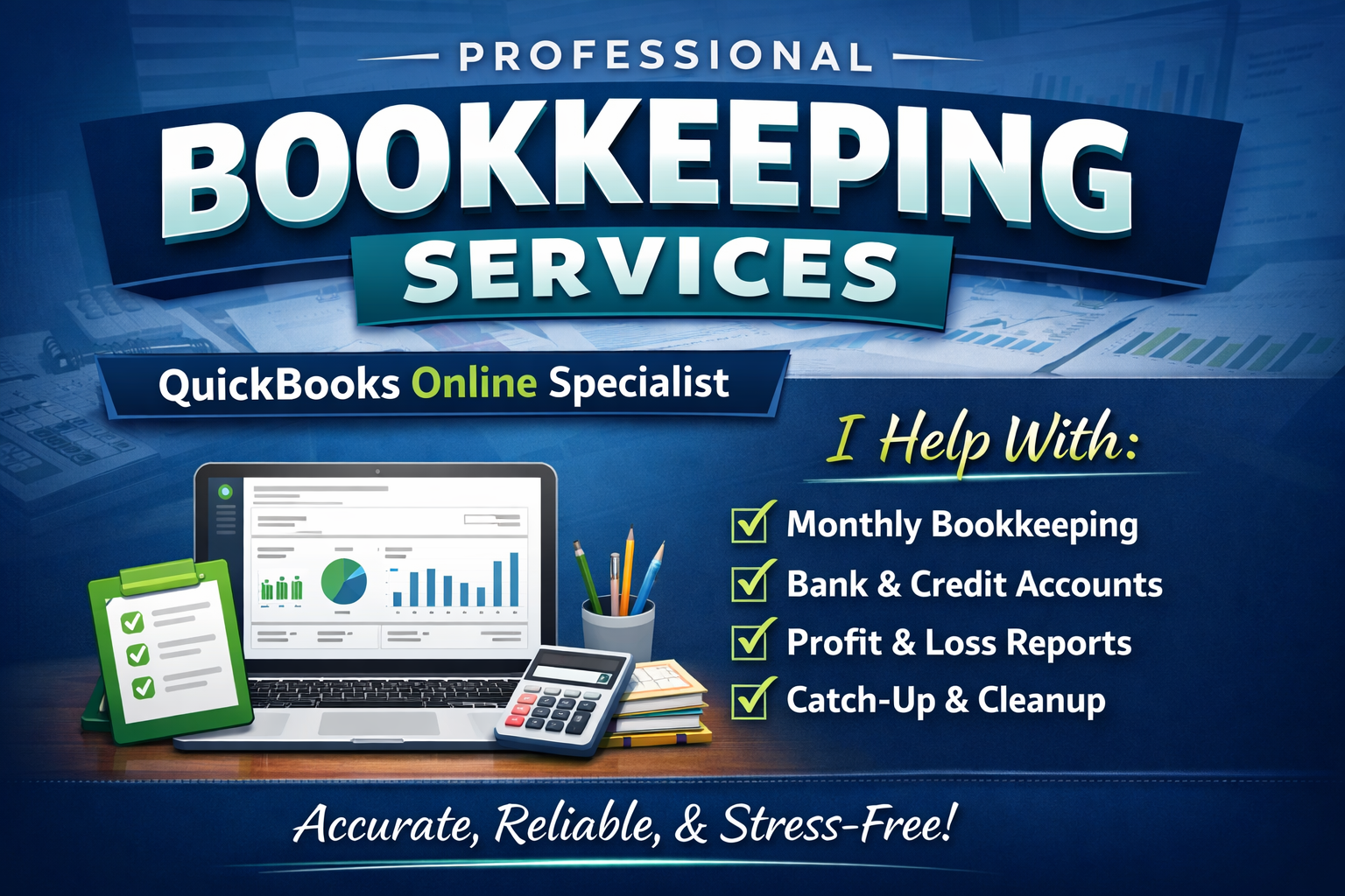 I manage and maintain QuickBooks Online bookkeeping so your financial records stay clean, accurate, and easy to understand.