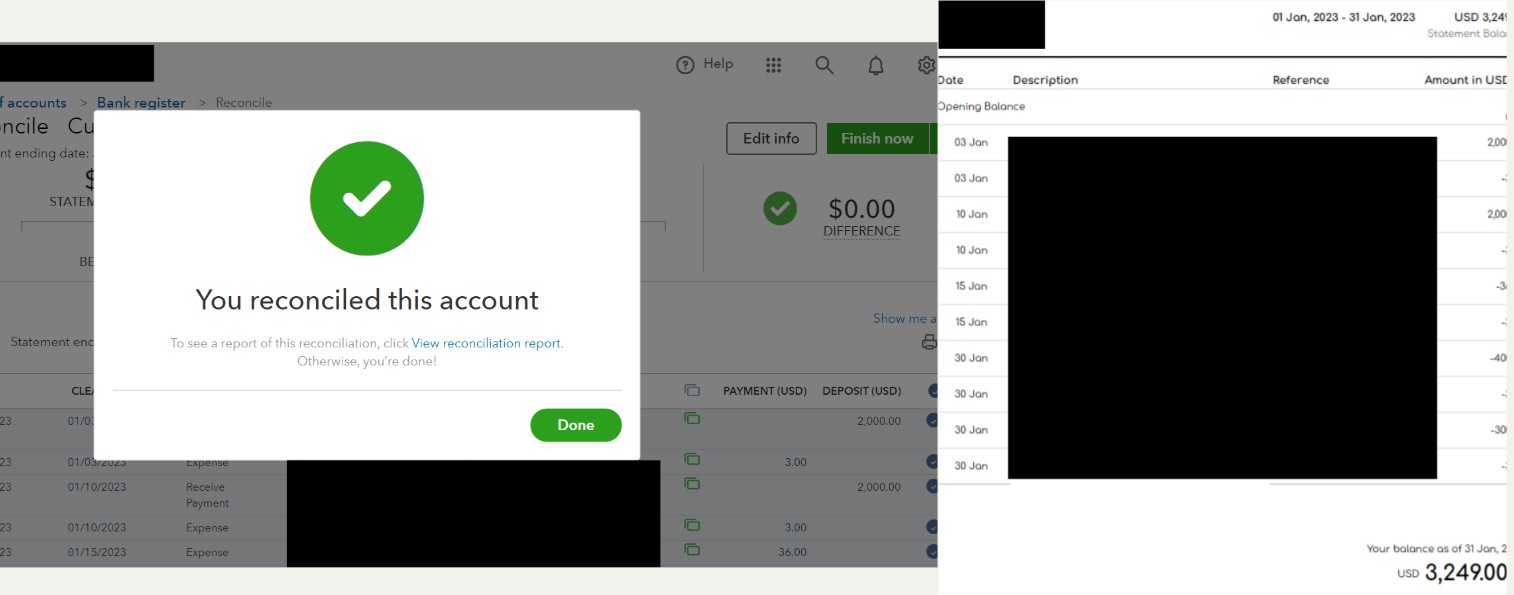 Monthly bookkeeping for one business with up to 3 bank or credit card accounts.