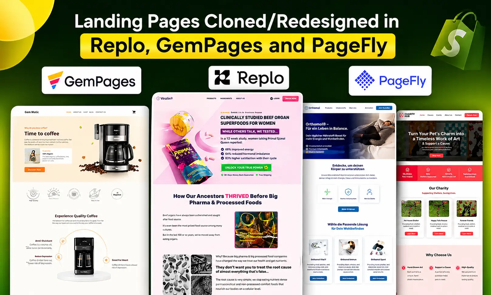 I design conversion-focused Shopify landing pages, product pages, and advertorials using Gempages, Pagefly, and Replo, tailored for: