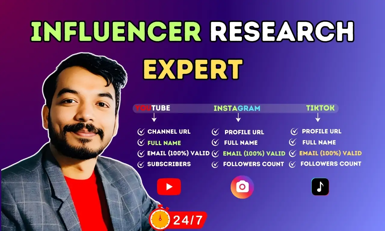 I am an expert in influencer research and email list building. I collect targeted YouTube, TikTok, Instagram, and podcast influencers with verified contact details. I deliver accurate data, fast service, and reliable results for your outreach campaigns.