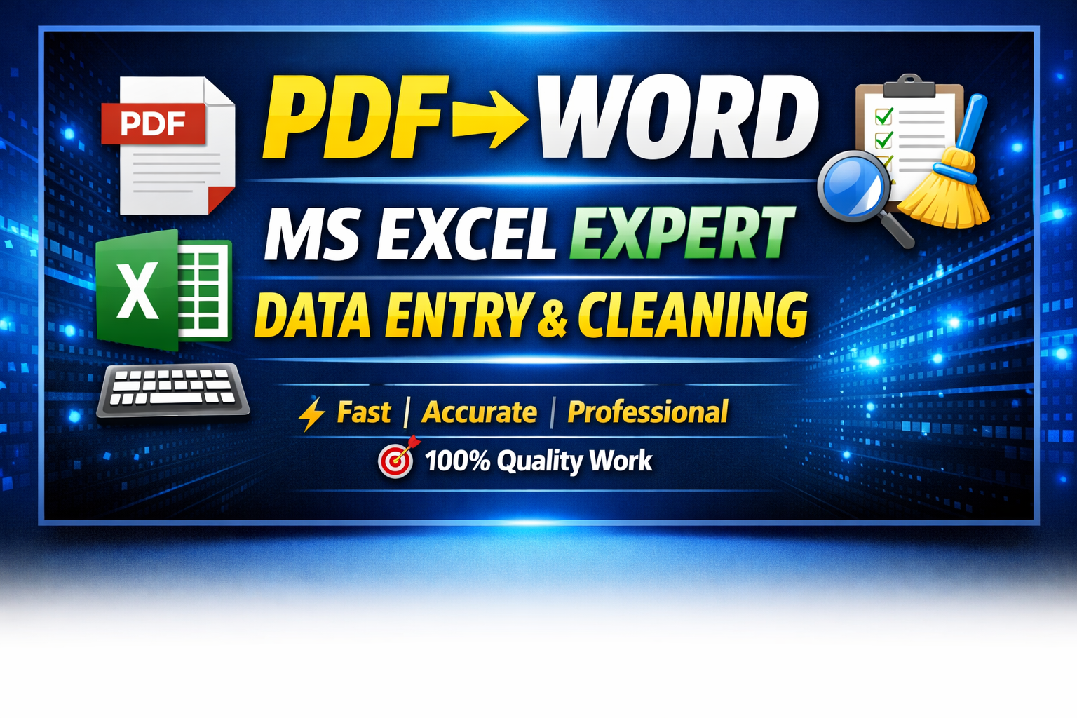 I provide professional services in PDF to Word conversion, MS Excel work, data cleaning, and accurate data entry. If you are looking for fast, reliable, and high-quality work, you are in the right place.