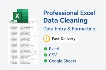 If you are looking for a reliable and detail-oriented professional to help manage your spreadsheet data, you are in the right place. I provide professional Excel data cleaning and data entry services designed to organize your data, improve accuracy, and make your spreadsheets easier to use.