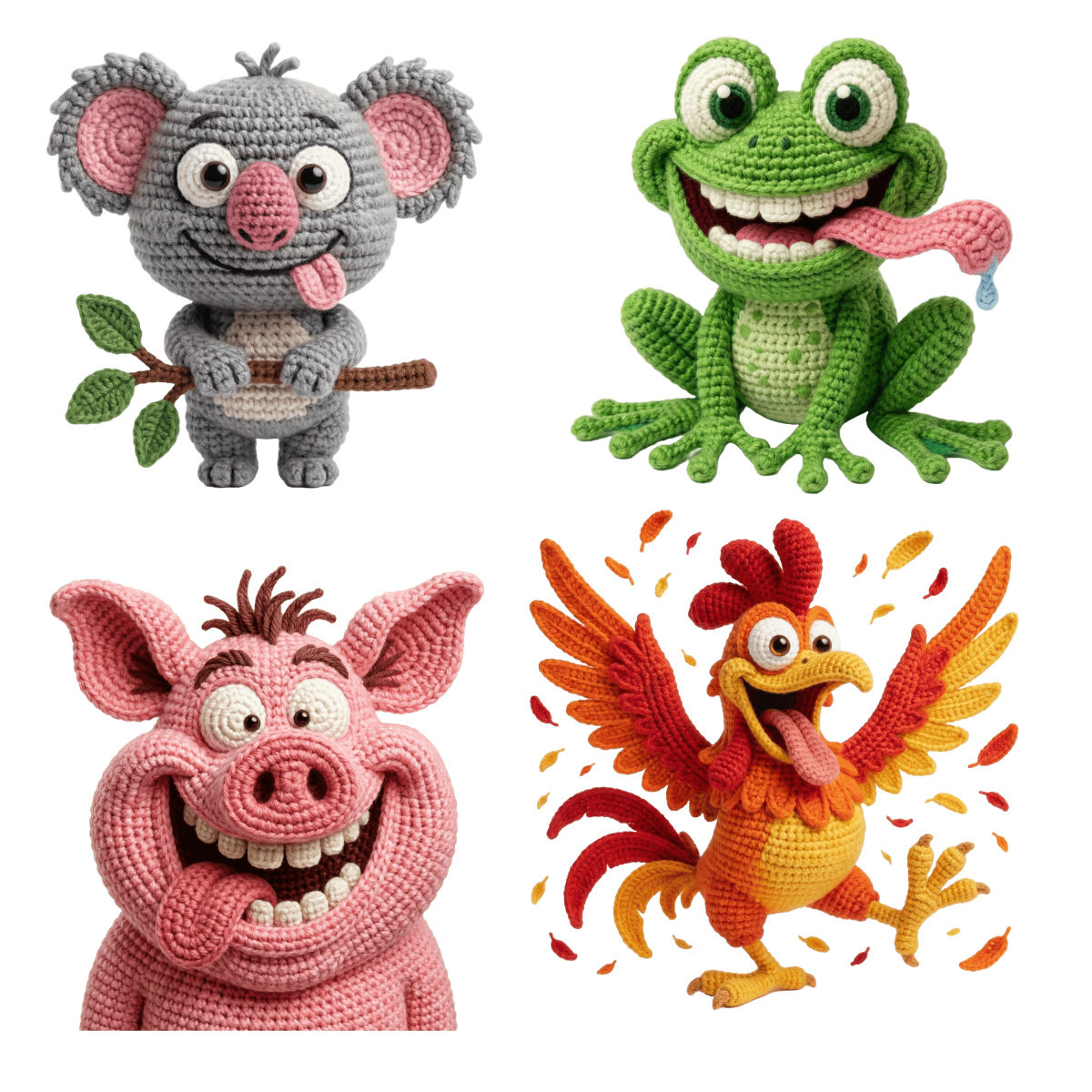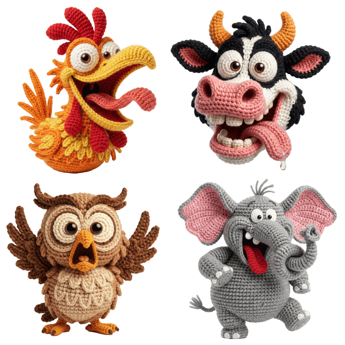Funny 3D Crochet Animals Bundle Hyper-Realistic Amigurumi Clipart