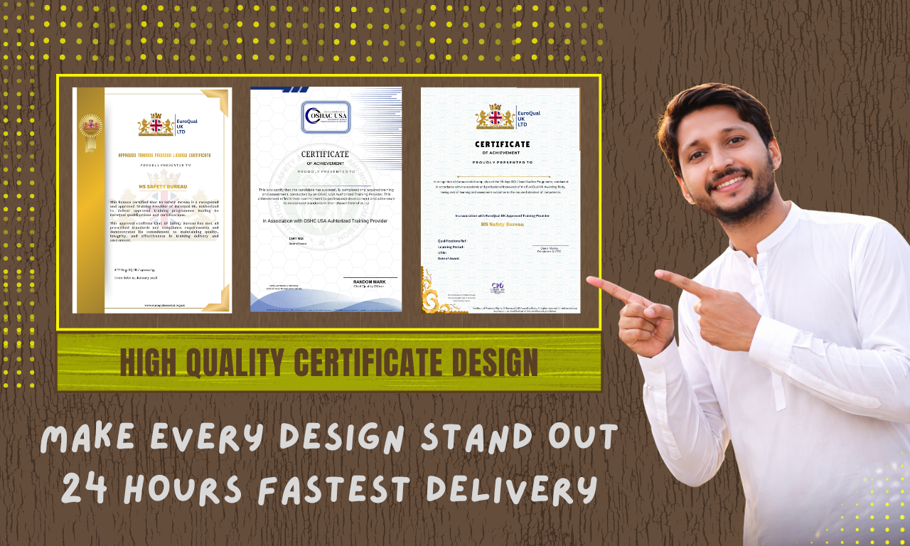 I work as an expert graphic designer with a focus on creating excellent certificates. I design clear, contemporary, and eye-catching certificates that are designed to meet the requirements of any organization. My goal is to provide high-quality designs that showcase your business identity and elevate every achievement. I prioritize client pleasure, innovation, and attention to detail in my work.