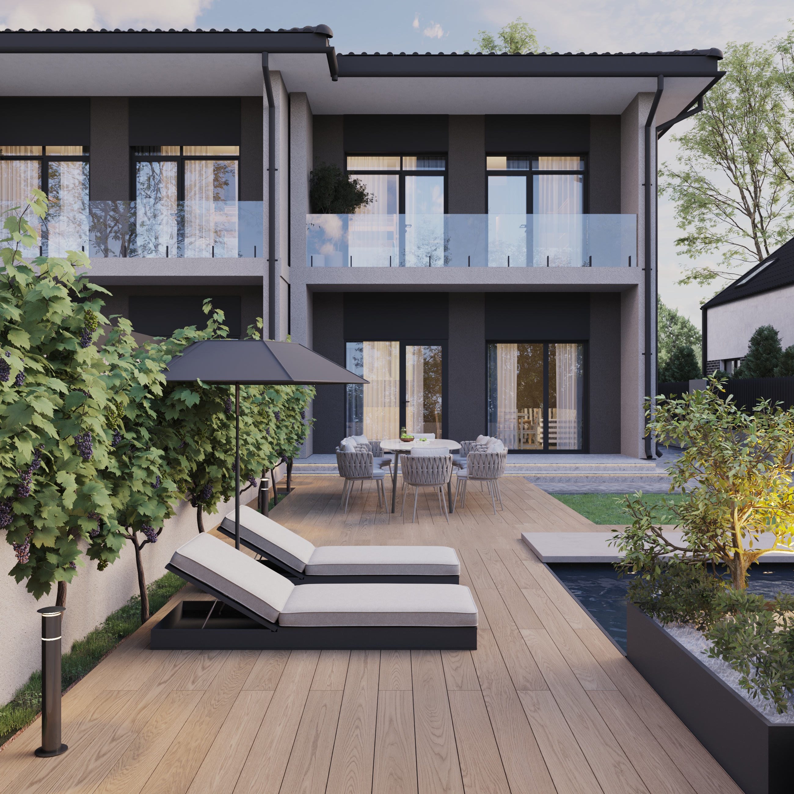1 exterior render from your plans. Clean composition with basic environment.