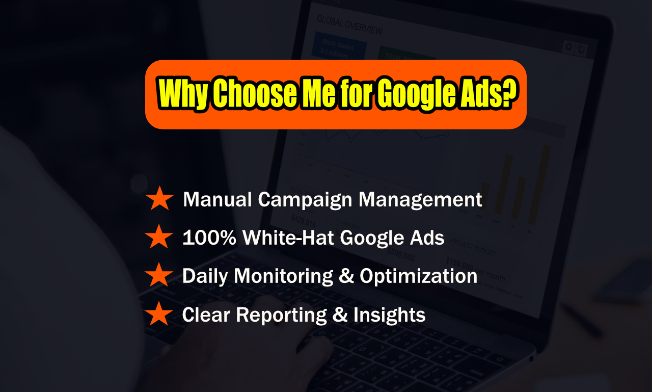 I provide full Google Ads services including account setup, campaign creation, keyword research, ad copywriting, conversion tracking (GA4/GTM), bid strategy optimization, and ongoing campaign monitoring. Packages are tailored for your business goals.