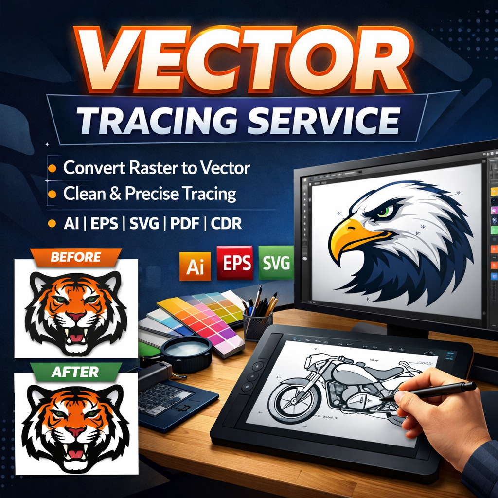 Need your logo, image, or artwork converted into a clean, high-quality vector file? I offer professional manual vector tracing to create smooth, accurate, and scalable designs suitable for print and digital use. I do not use auto-tracing, ensuring each design is polished and precise.