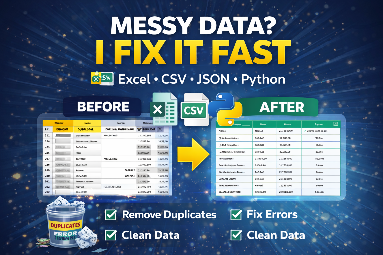 I work with various types of data, including business data, sales records, survey results, customer databases, research data, and database exports. Whether your dataset is small or large, I will deliver accurate and reliable results within the agreed timeframe.