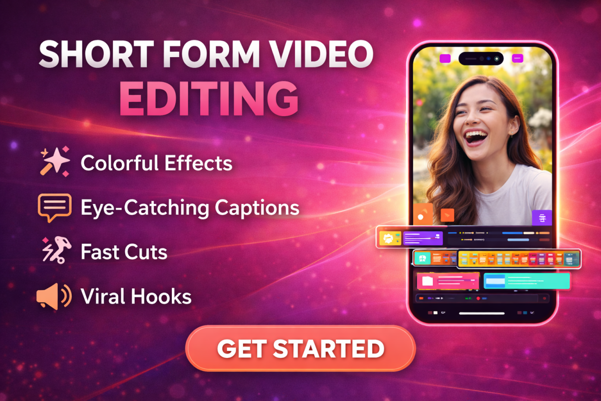 10 short form edits with color grading, SFX, and motion graphics. Delivery in 24 to 48 hrs