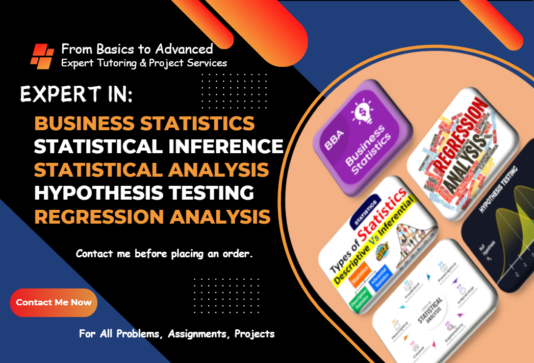I handle assignments, projects, reports, and data analysis in Business Statistics, Probability, and Regression.