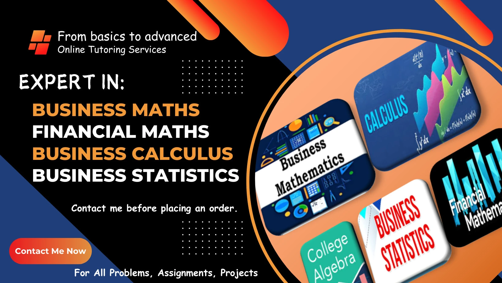 I solve a wide range of problems in Business Mathematics, College Algebra, Business Calculus, and Financial Mathematics, including both basic and advanced-level tasks.
