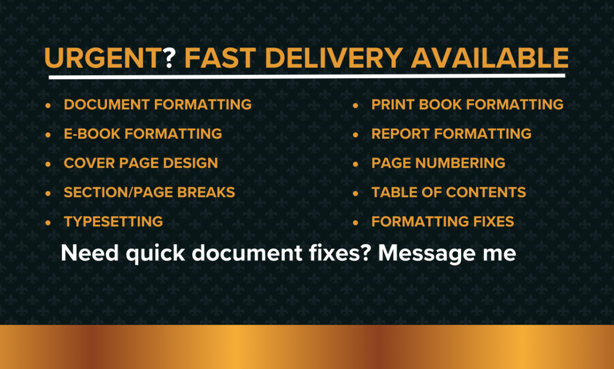 I format reports, SOPs, proposals, manuals, academic documents, and other MS Word files.