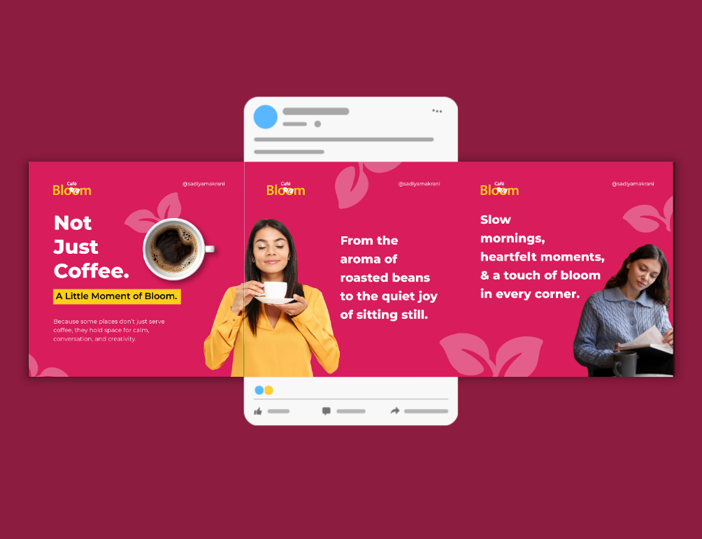 I've worked with businesses across real estate, food and catering, education, and retail. That means I understand that a preschool post needs to feel warm and playful, a real estate post needs to feel premium and trustworthy, and a restaurant post needs to make people hungry just by looking at it. Different businesses need different visual languages, and I know how to speak them.