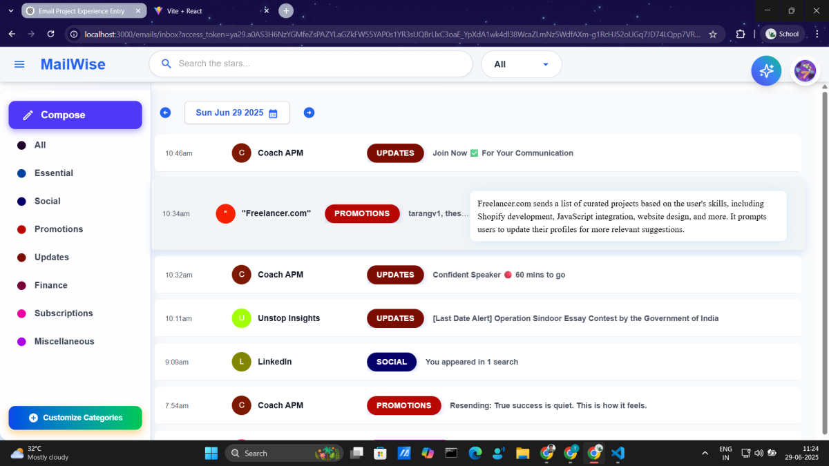 On the frontend, I build clean and functional user interfaces using HTML, CSS, JavaScript, and React. I focus on making sure the frontend connects smoothly with backend APIs and delivers a simple, usable experience.
