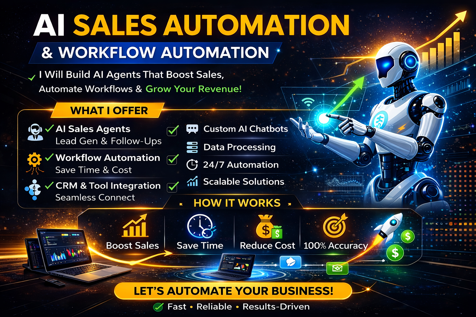 Stop wasting hours on repetitive tasks, lead follow-ups, or manual data processing. Every business has repetitive processes that eat up time and slow growth, and that’s exactly where intelligent AI automation can make a huge difference. I design and build AI agents tailored specifically to your business operations, whether that’s sales, support, or internal workflows. These agents work continuously, freeing your team from mundane tasks while boosting efficiency and ensuring nothing falls through the cracks.