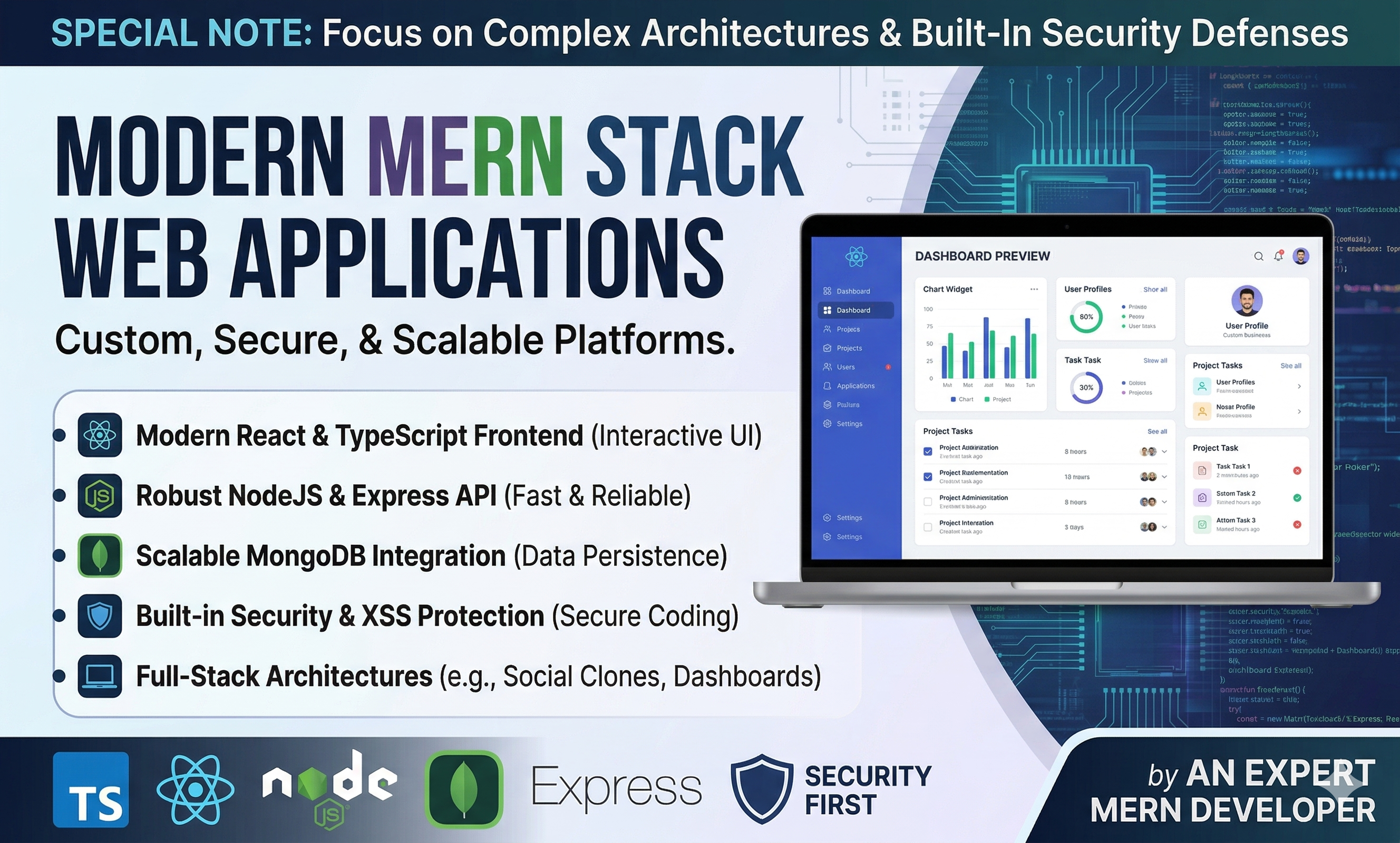 Are you looking for a robust, fast, and scalable web application? I specialize in full-stack web development using the MERN stack along with TypeScript to build secure and high-performing platforms. In today's digital landscape, having a reliable web presence is critical, and I am here to help you achieve that with modern web technologies.