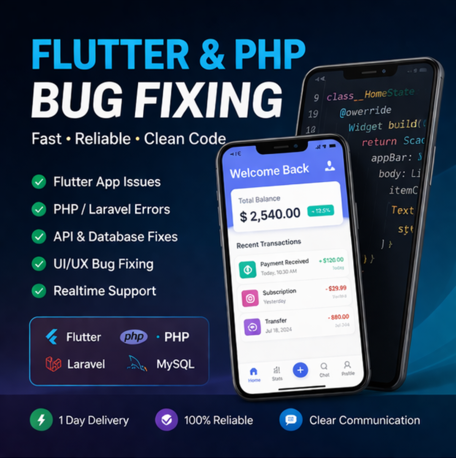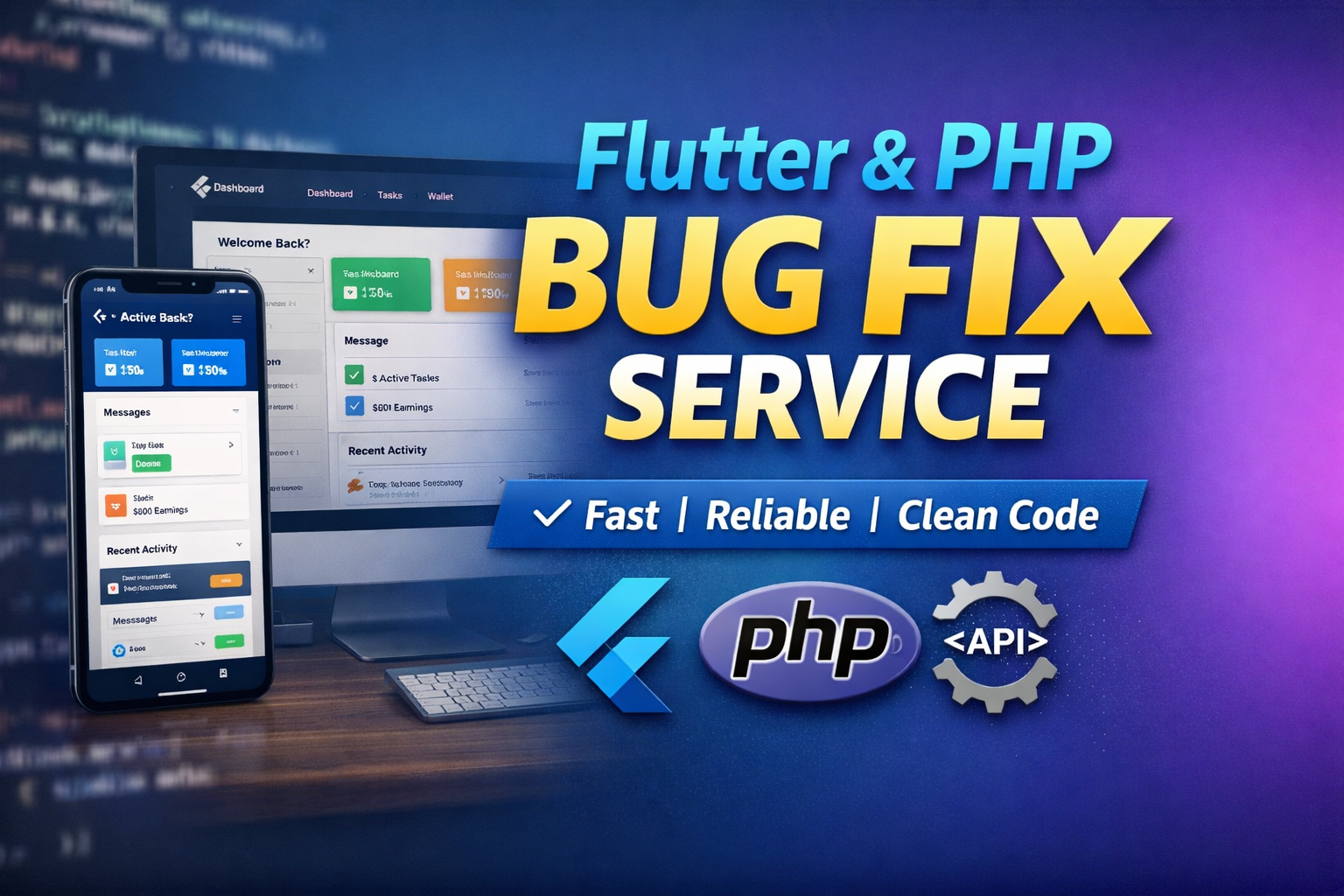 Are you facing issues in your Flutter mobile app or PHP website? I provide professional bug fixing and troubleshooting services to ensure your application runs smoothly, efficiently, and without errors.