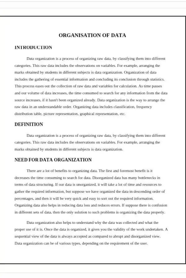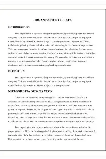 - Rearrangement and organization of data for easy access