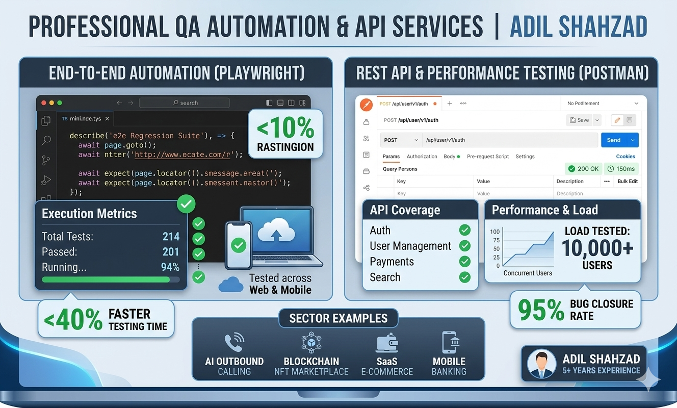 Software QA Engineer with 5 years of experience testing websites, mobile apps and SaaS products. Skilled in manual and automation testing using Playwright, Selenium and Cypress, plus API testing with Postman. I help businesses launch stable, bug-free products through detailed testing, clear bug reports and strong communication.