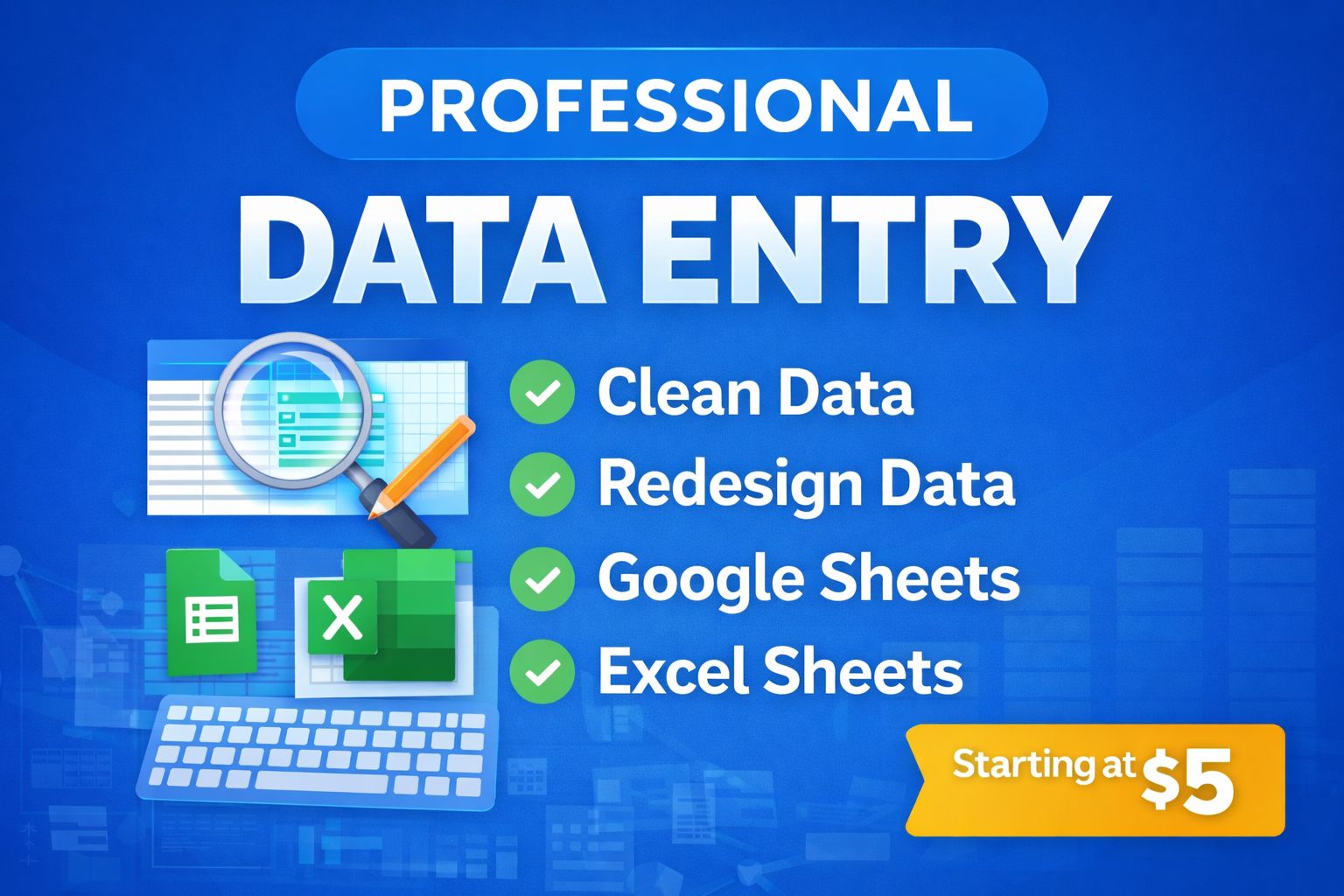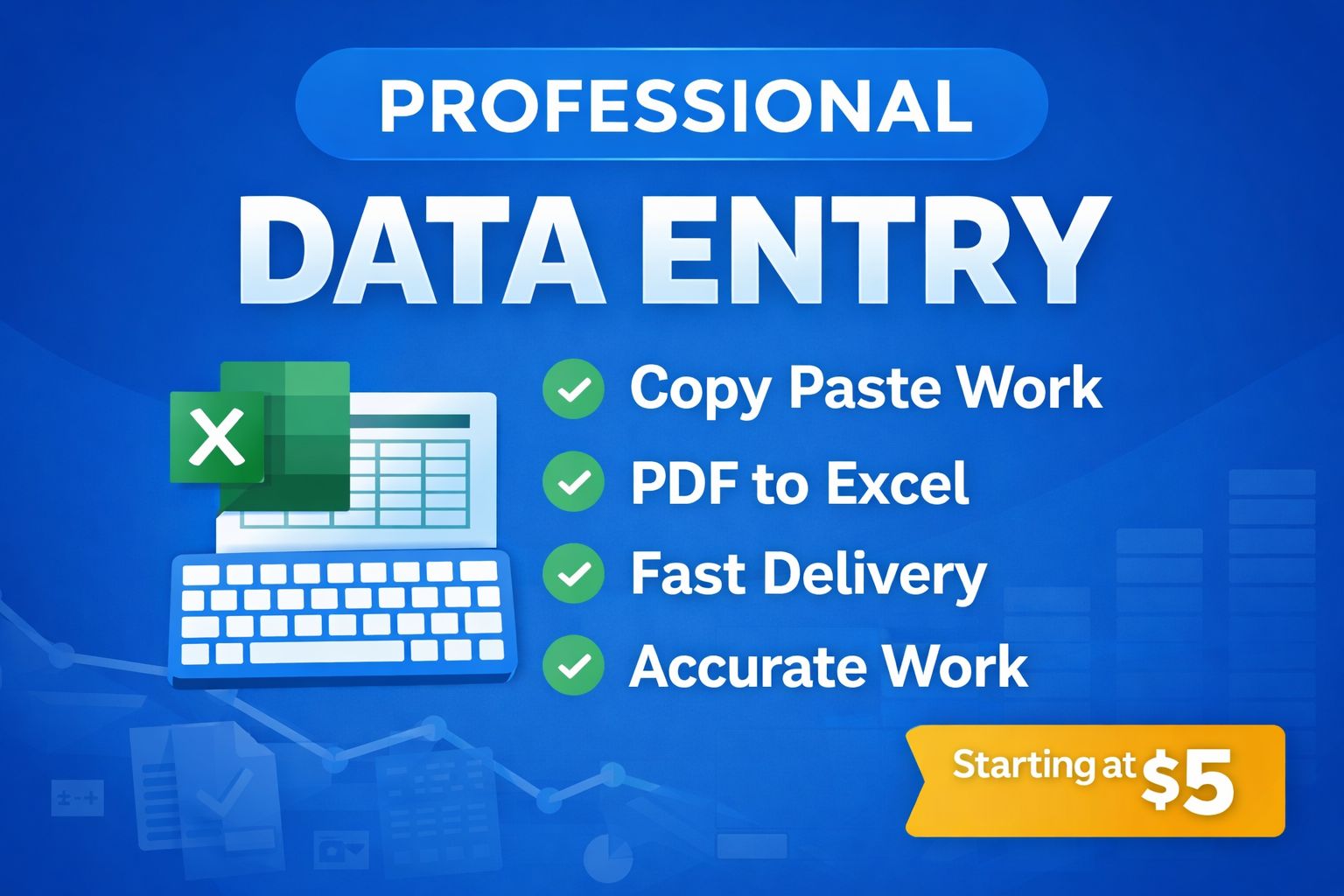 Answer: Yes, I provide 100 percent accurate data entry, copy paste, and Excel work with fast delivery.