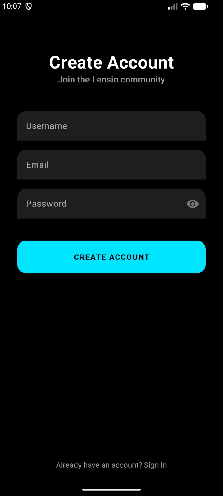 Lensio Social App.