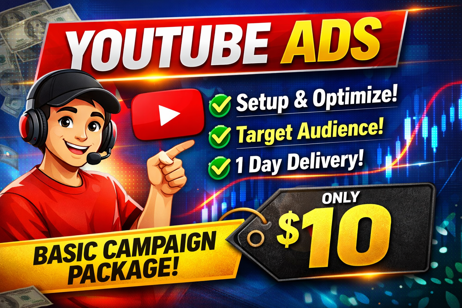 I will create and manage YouTube video advertising campaigns to help grow your brand, increase visibility, and reach the right audience. This service is ideal for businesses, startups, and content creators who want to promote their products or services effectively through YouTube ads.