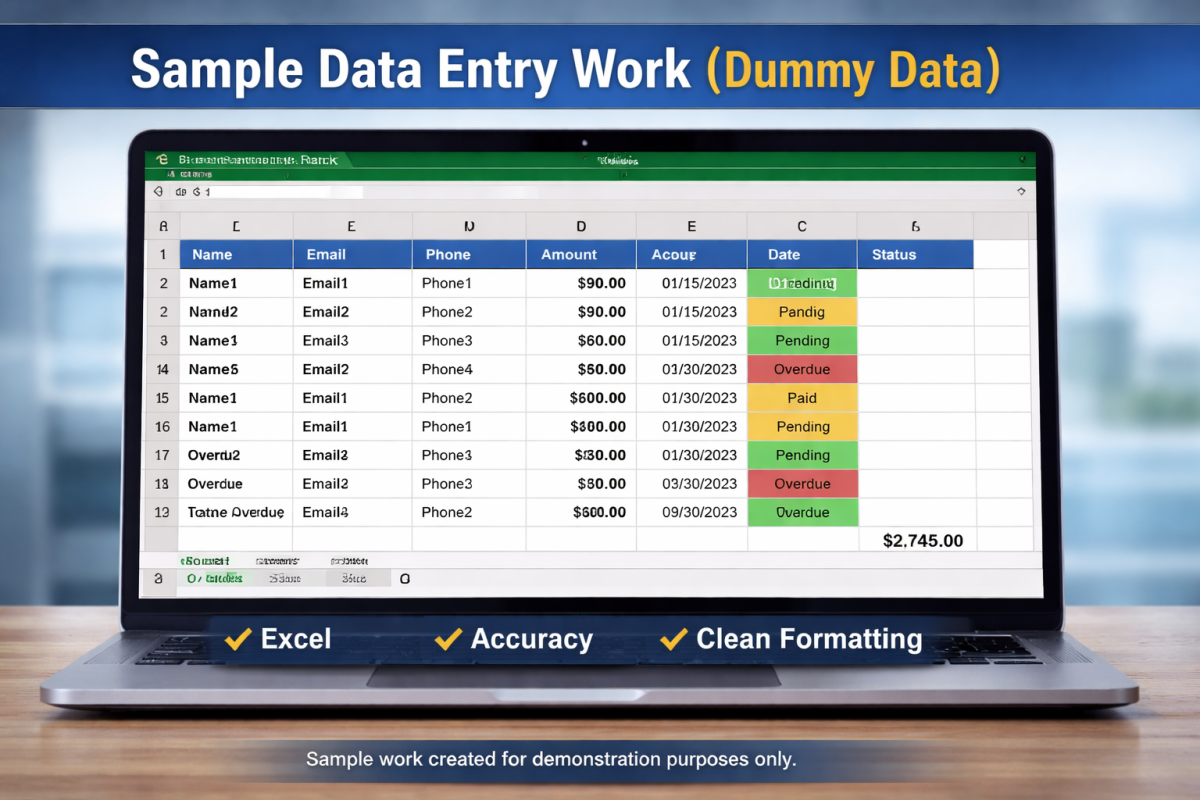 I deliver fast and accurate data entry, PDF to Excel conversion, data cleaning, and basic bookkeeping. My service helps businesses organize data, reduce errors, and save time with reliable support, on-time delivery, and complete confidentiality.