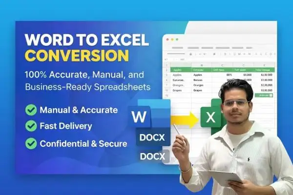 Are you looking for an accurate, clean, and professionally formatted Word to Excel conversion? You’re in the right place. I will manually convert your Word (DOC/DOCX) documents into fully editable, well-structured, and properly organized Excel spreadsheets with complete attention to detail.