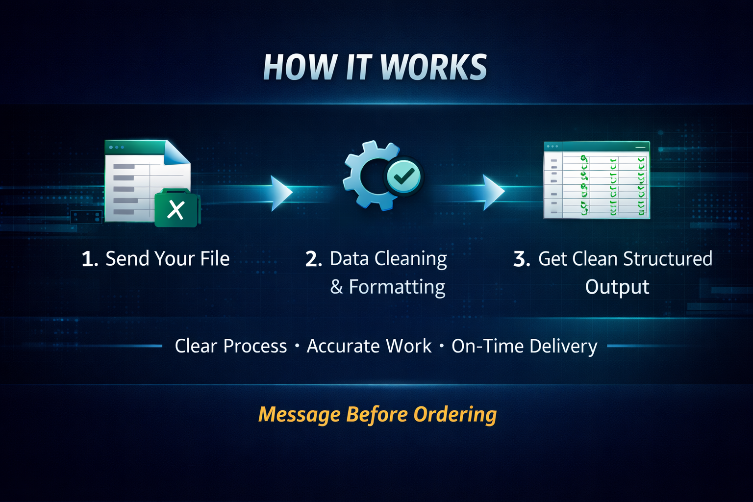 If your Excel or CSV file is messy, inconsistent, or full of duplicate and incorrect records, it can waste time, reduce accuracy, and create problems in reporting, analysis, or system uploads. I help businesses clean, format, and organize data so it becomes structured, reliable, and easier to use.