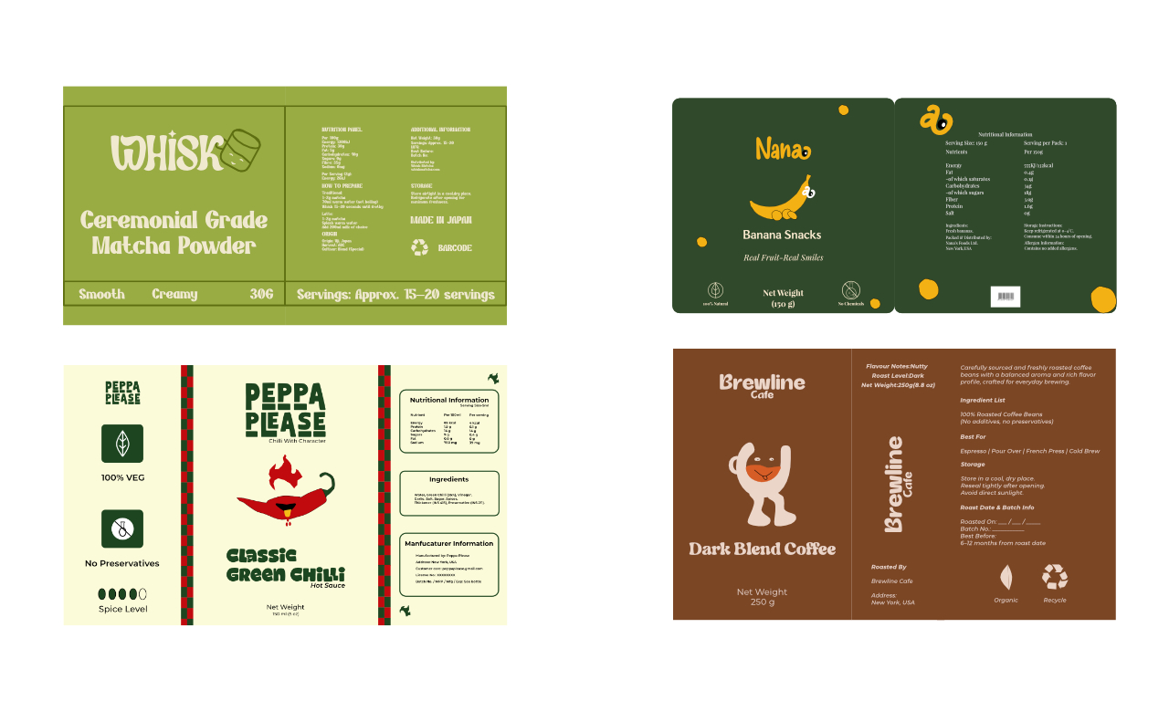 Professional packaging design for products across food, beverage, cosmetics, personal care, supplements, and retail. Focus on clear branding, shelf impact, and production-ready files suitable for print and digital marketplaces.