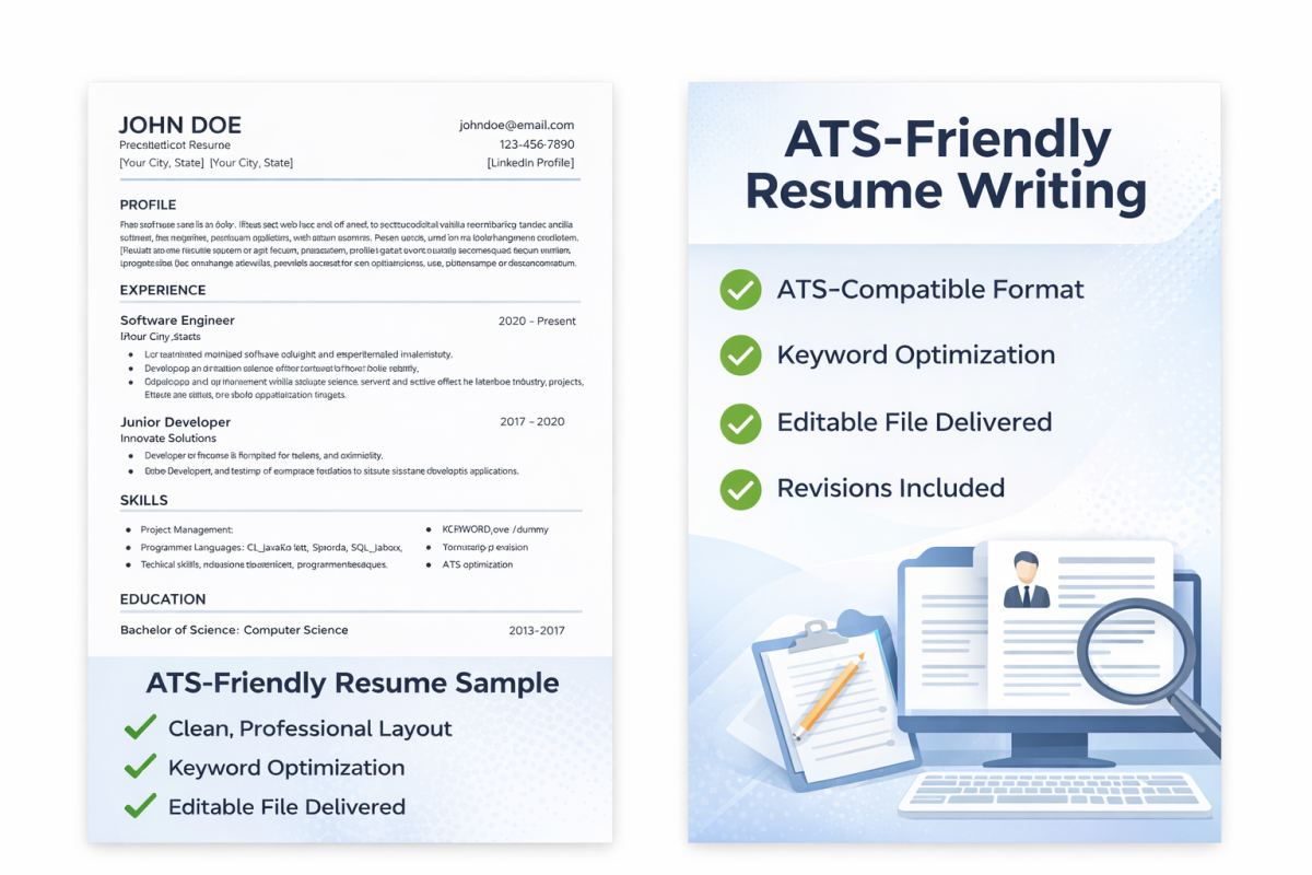 I provide professional resume writing services designed to help individuals present their qualifications clearly, effectively, and in a manner aligned with current recruitment standards. This service focuses on creating ATS-friendly resumes that are structured to be easily parsed by Applicant Tracking Systems while remaining clear and impactful for hiring managers.