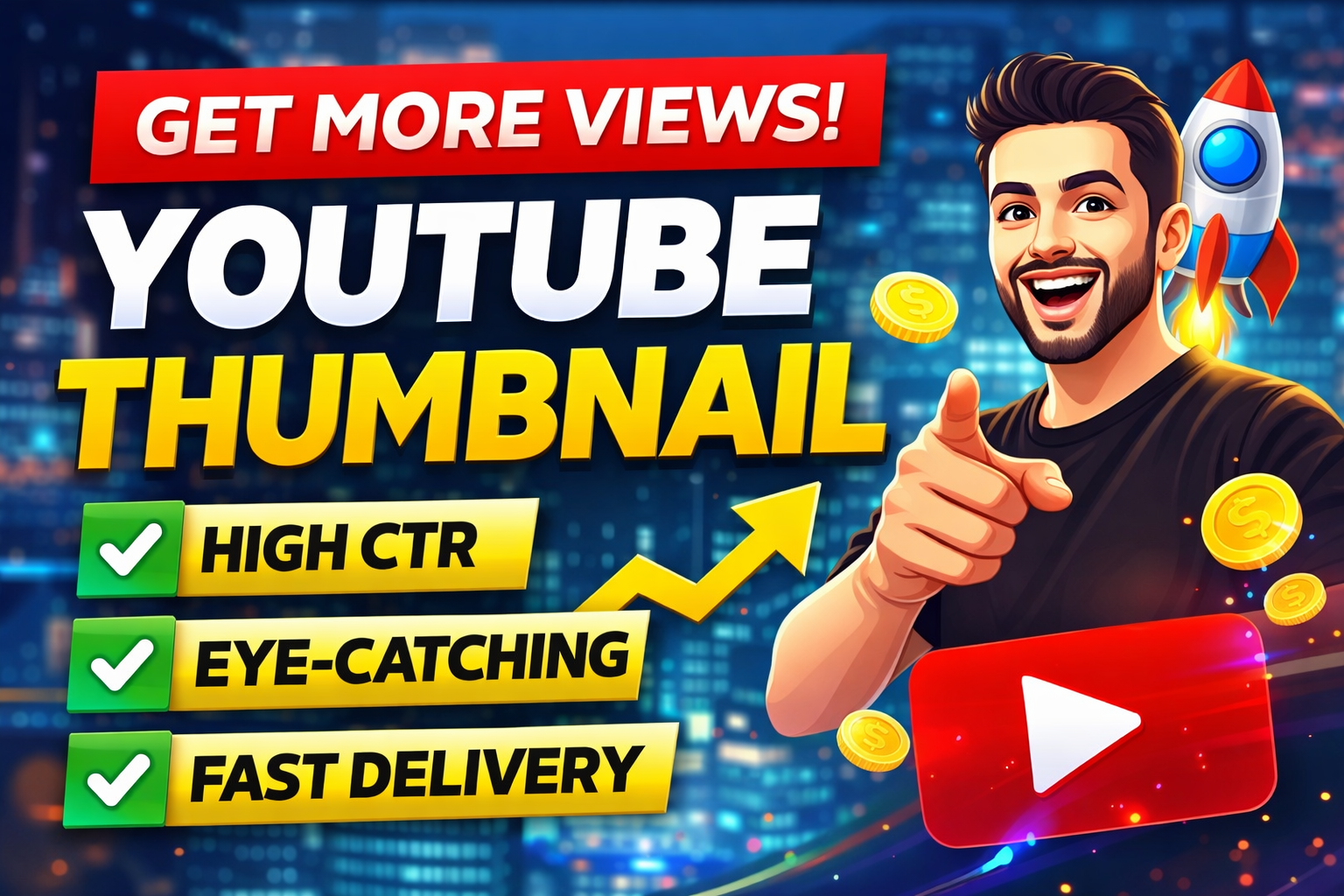 I specialize in modern and trending thumbnail styles suitable for YouTube videos, YouTube Shorts, gaming channels, educational content, reaction videos, and social media posts. I focus on strong composition, bold typography, attractive colors, and clear visual storytelling to make your thumbnails stand out from the competition.
