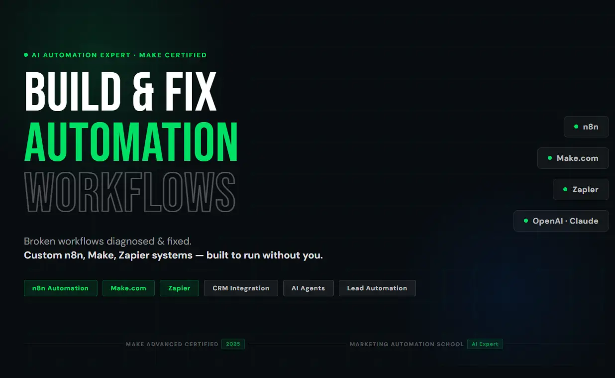 I'm Artur, an AI automation specialist. I build workflows with n8n, Make and Zapier that handle repetitive work automatically using AI (OpenAI, Claude). What I've built: AI inbox assistants, lead capture pipelines, appointment booking systems, Telegram agents and CRM sync flows — all with error handling included. Sales background, so I speak business first, tech second. Stack: n8n, Make, Zapier, OpenAI, Airtable, Google Calendar, Gmail, Slack, Telegram
