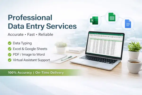 I provide accurate, fast, and reliable data entry and data typing services to help businesses and individuals stay organized and save time. Whether you have scanned documents, handwritten notes, or raw data, I will convert them into well-structured digital formats.