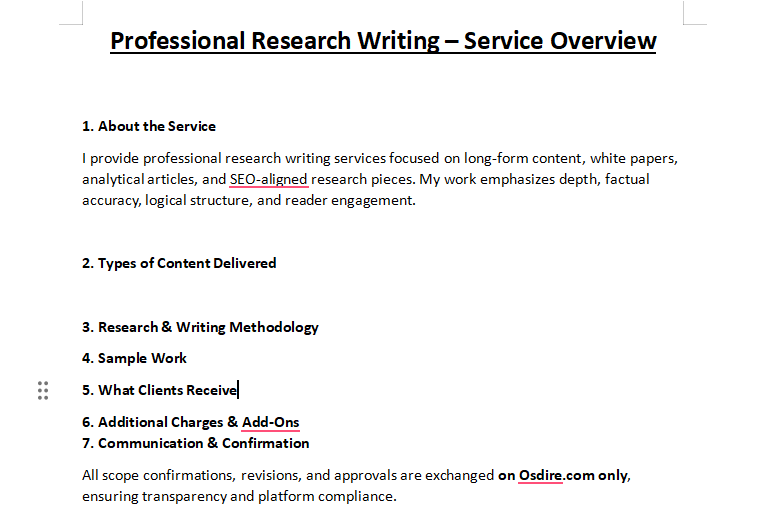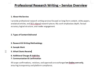 I help clients with professional research writing services, specializing in long-form content, white papers, and SEO-aligned articles. Each piece is well-structured, fact-checked, and written with clarity and depth to support credibility and informed decision-making.