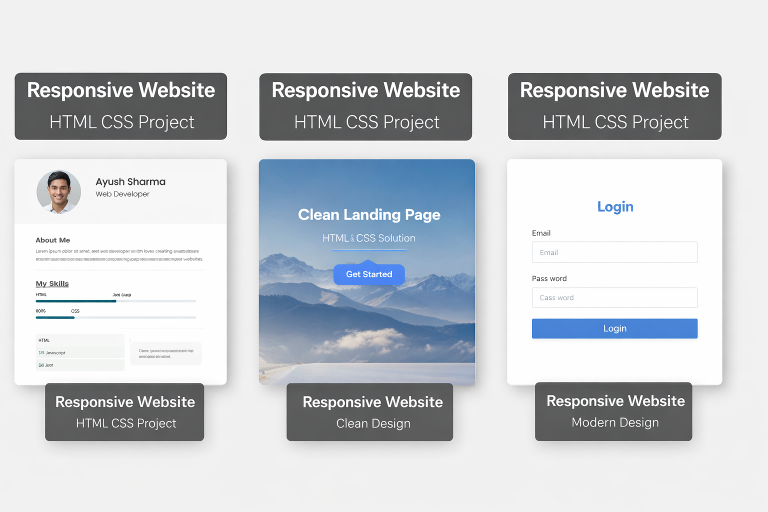 Responsive website using HTML CSS. Clean design for mobile and desktop.