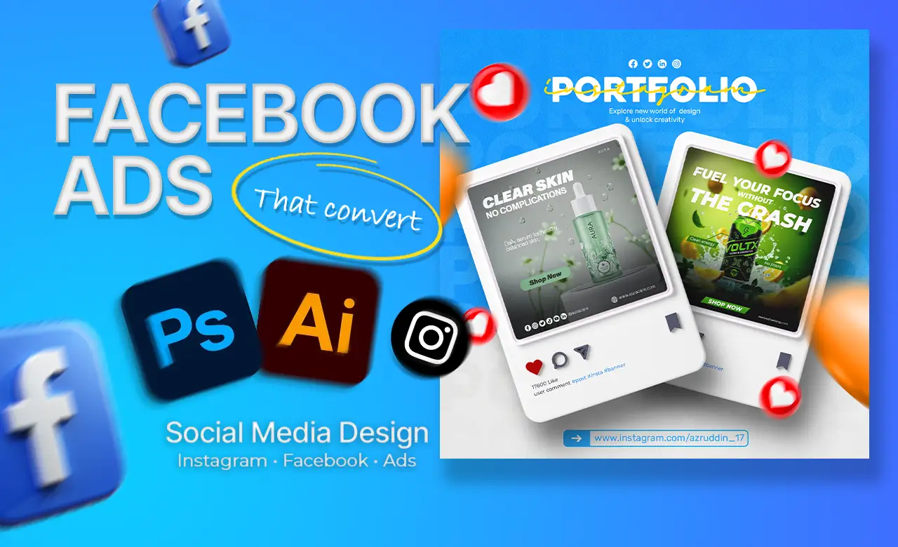 I am Azruddin, a social media ad designer specializing in Instagram and Facebook creatives built to stop the scroll and drive real clicks. Every design is made from scratch in Adobe Photoshop. No Canva. No stock templates. No recycled layouts.