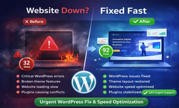 I provide urgent WordPress bug fixing for critical issues that need immediate attention. Most problems are diagnosed and resolved within 60 minutes.