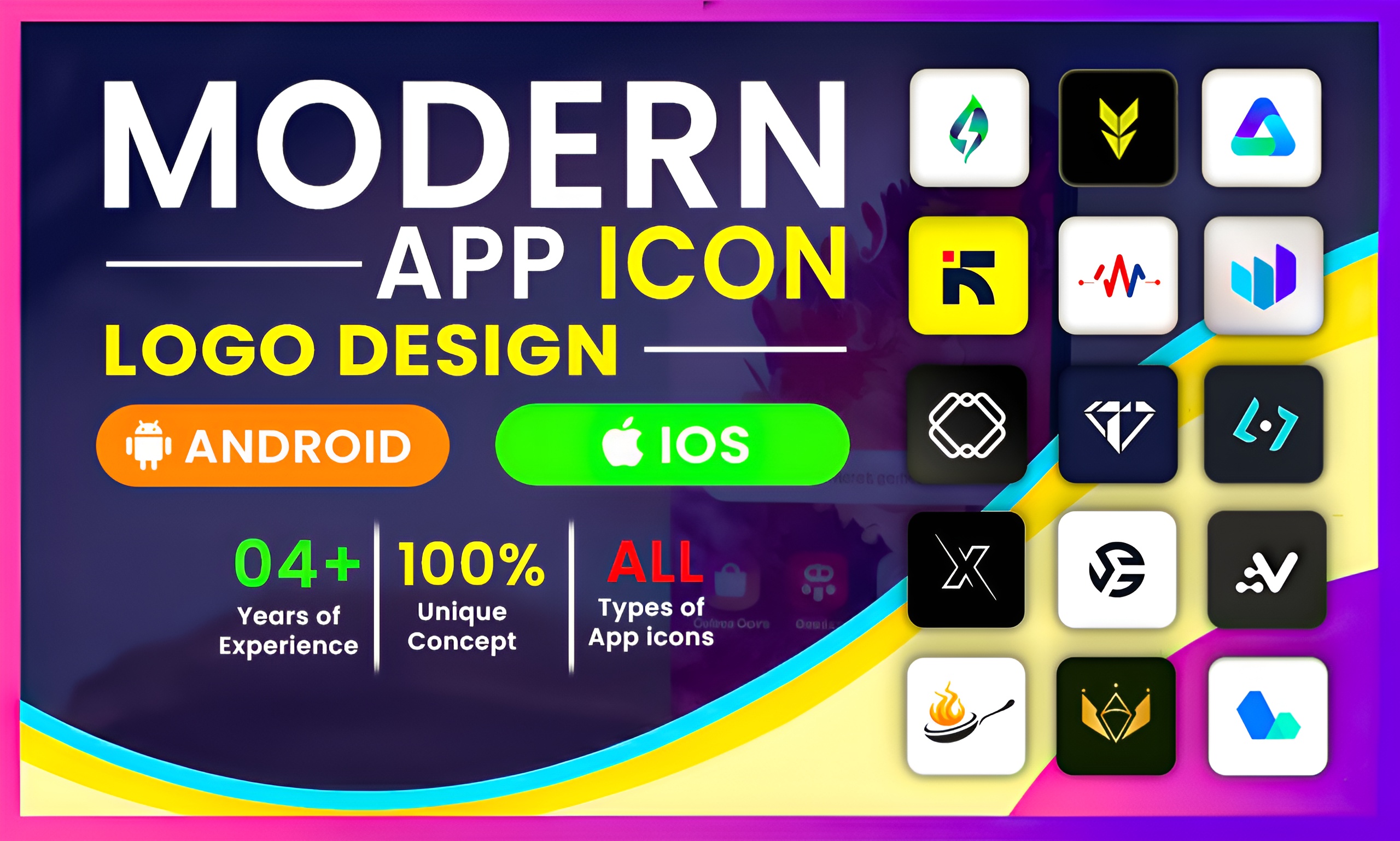 1 UNIQUE MODERN App Icon Logo - PNG, JPEG File & EPS File - UNLIMITED Revisions